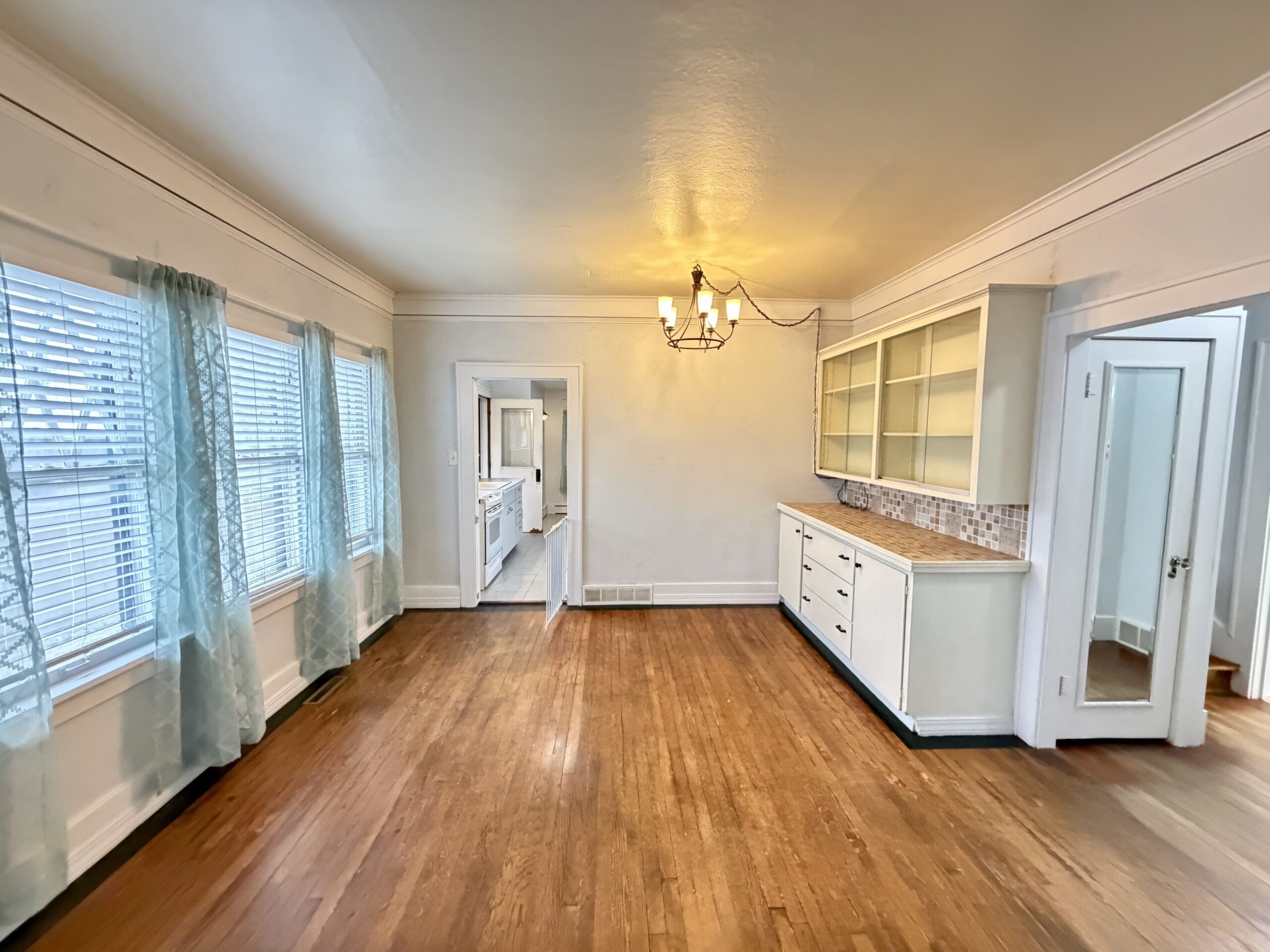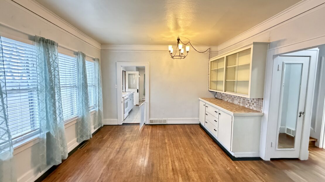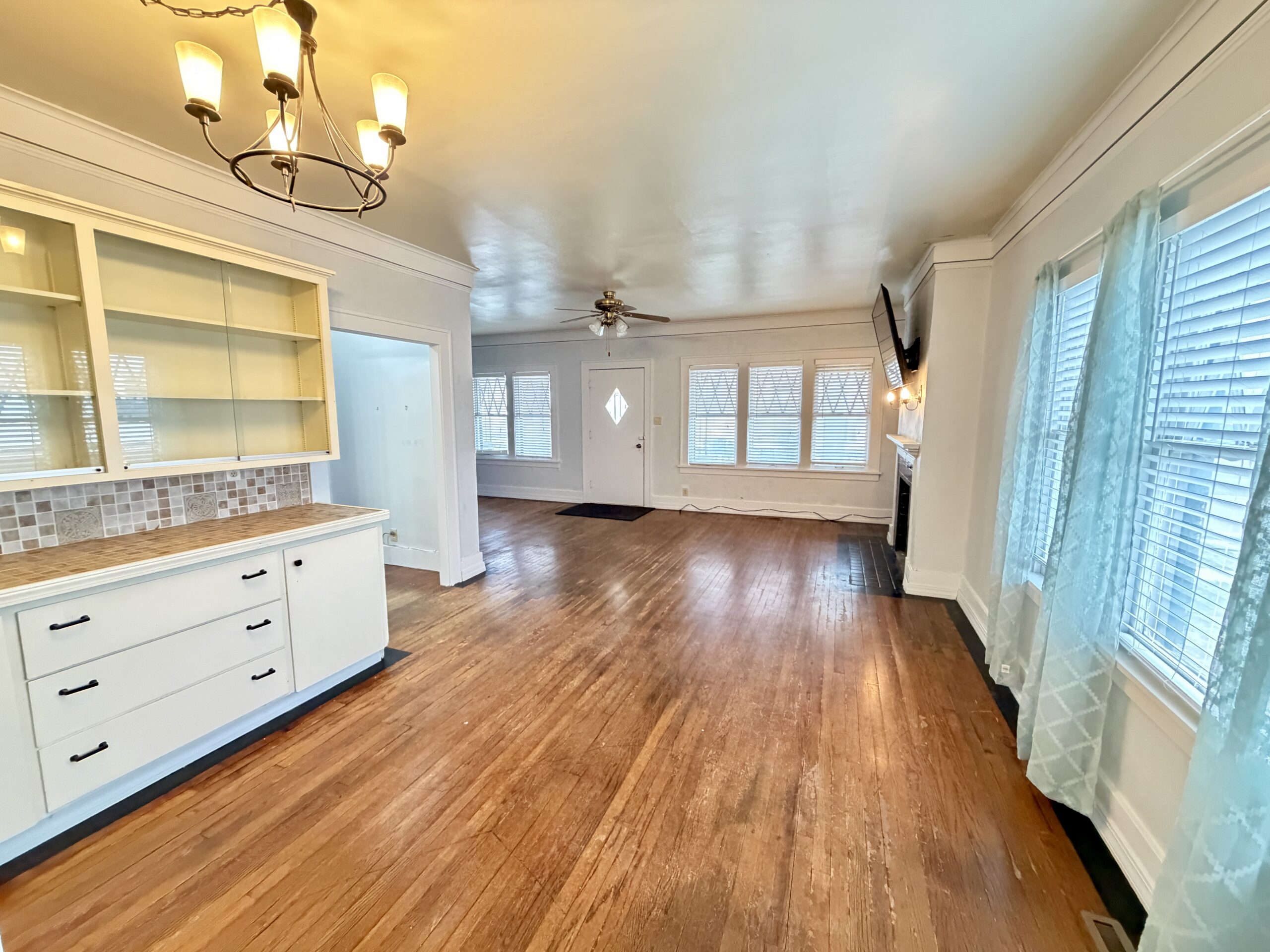 Interior Amenities = Spacious Main Living, Built-In Dining Hutch, Tall Ceilings, Painted Kitchen Cabinets, Laminate Countertops, Ceramic Sink, Ceiling Fans, Coat Closet